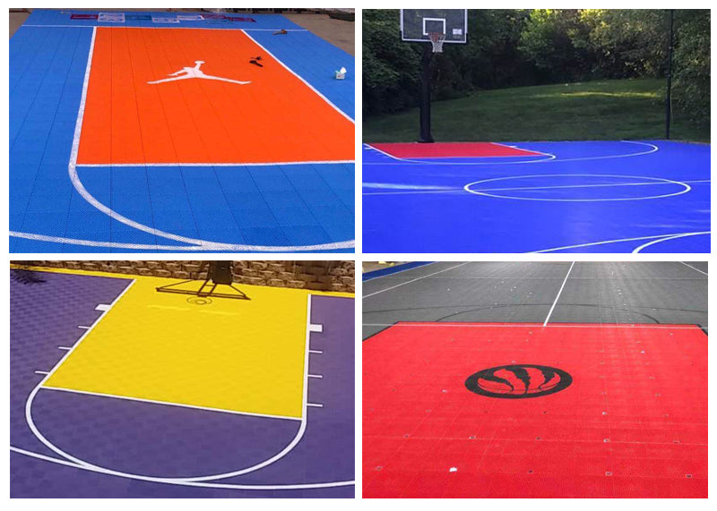 HypeCourts offer a variety of ready to lay basketball floor court tiles. We provide custom basketball court sizes based on your backyard (or any space) dimensions. HypeCourts basketball tiles can lay over any hard surface, including concrete or paving bricks.